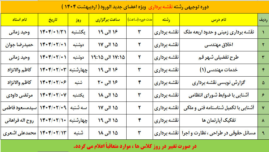 فراخوان دوره توجیهی رشته نقشه برداری ویژه اعضای جدیدالورود به شرح زیر است.